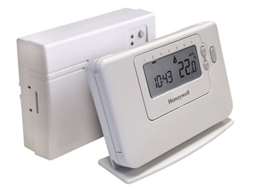 Sada bezdrátového regulátoru teploty obsahuje pokojovou jednotku CMT727A a reléovou jednotku R6660D (HC60NG). K pokojové jednotce není nutné instalovat žádná kabelová vedení. Je zapotřebí pouze vedení mezi reléovou jednotkou a regulovaným zařízením (např. kotlem) a instalovat pokojovou jednotku na vhodném místě, kde spolehlivě funguje radiofrekvenční komunikace. Programovatelný pokojový termostat vám zajistí komfortní teplotu, jste-li doma a úspory energie, jste-li mimo svůj domov.