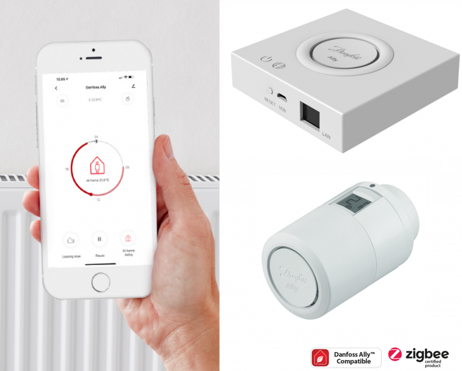 Systém Danfoss Ally je systém chytrého vytápění šetřícího náklady a čas. Umožňuje získat plnou kontrolu nad vytápěním v domácnosti, ať jste kdekoli. Pomocí mobilní aplikace můžete odkudkoli zkontrolovat teplotu v domácnosti, nastavit jinou, zapnout či vypnout radiátory či upravit podlahové vytápění. Návrat do vyhřáté domácnosti se tak stane novým standardem. Systém navíc dokáže komunikovat s hlasovými asistenty Google Assistant a Amazon Alexa, takže nastavit teplotu můžete i pouhým slovem. Otevřený systém API umožňuje připojit i produkty jiných značek.