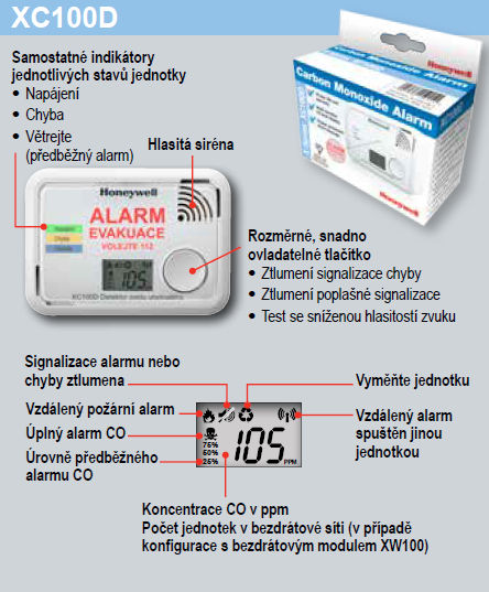 Detektor oxidu uhelnatého XC100D-CS, 10 let životnost a záruka, zvýrazněné zobrazení poplašného hlášení, LCD displej. Více informací