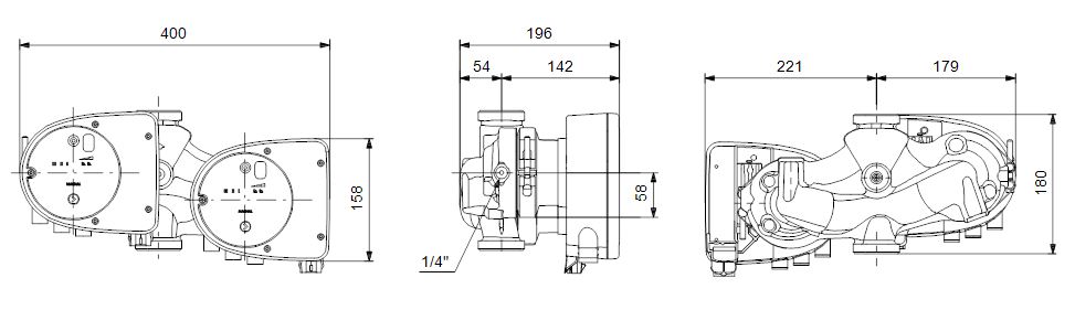 Dvojité elektronické oběhové čerpadlo Grundfos MAGNA1 32-40. Více informací