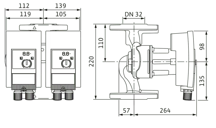 Dvojité Elektronické oběhové čerpadlo Wilo Yonos MAXO-D 32/0,5-11 PN 6/10. Pro použití v otopných systémech. Více informací