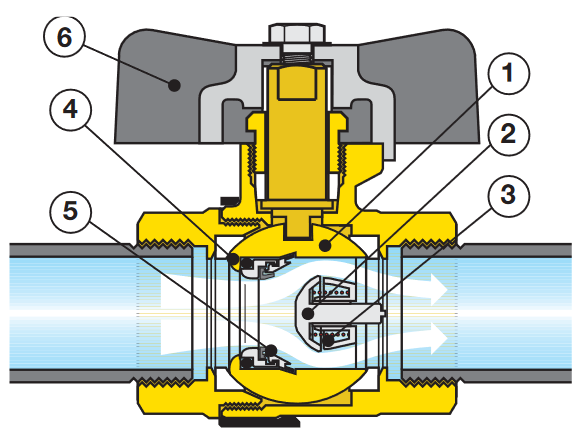 Motýlkovou rukojetí lze ventil ručně otevírat či zavírat. Uzávěr zpětné klapky (2) je při průtoku tlačen proti uzavírací pružině (3). Tím zůstává ventil otevřen a je umožněn průtok. Při poklesu vstupního tlaku pod úroveň výstupního je uzávěr náhled tlačen opačným směrem a dosedne na sedlo ventilu. Ventil je tak uzavřen a neumožňuje průtok ani jedním směrem. Dojde tak k zamezení zpětného toku.