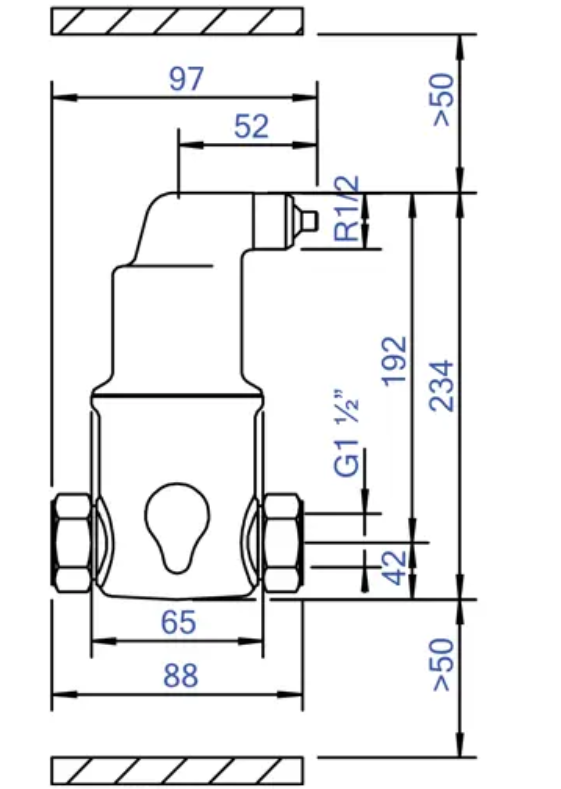 Mikrobublinový odvzdušňovač s horizontálním připojením Spirotech Spirovent AA150 s velikostí připojení 1 1/2". Více informací
