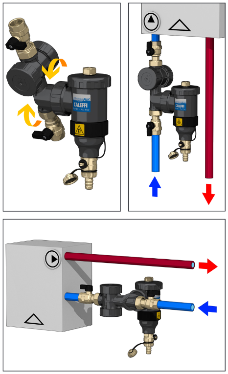 Odkalovač s filtrem a magnetickým kroužkem Caleffi DIRTMAG 545376 k odstranění nečistot a částeček rzi z klimatizační soustavy. Více informací