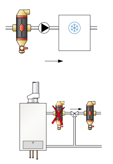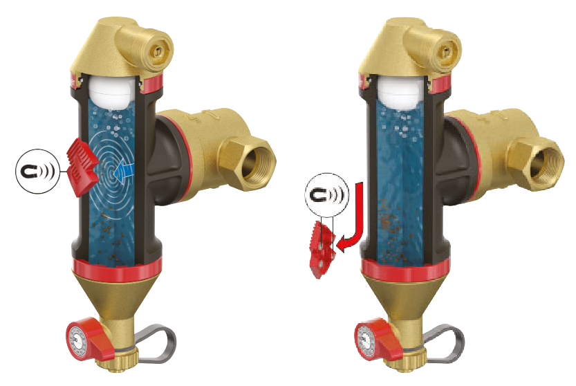 Magnetické nečistoty vyskytující se v potrubních systémech a uvolňující se z trubek mohou způsobovat celou řadu problémů v otopné/chladící soustavě - od hluku až po poškození čerpadel a omezení přenosu tepla. Odlučovače Flamco Flamcovent Clean Smart pomocí magnetů ukrytých v logu tyto částečky zachytávají. Jednou za čas pak stačí magnet uvolnit, částečky spadnou dolů a vypouštěcím ventilem spolu s vodou a jinými usazenými nečistotami vytečou ze systému.