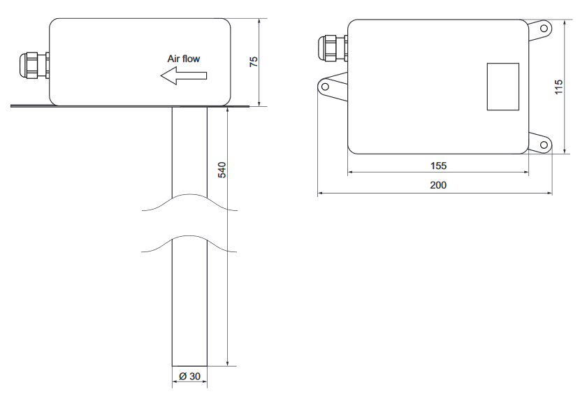 Optický detektor kouře do kanálu, potrubí a ventilačních systémů s alarmem a relé. Více informací