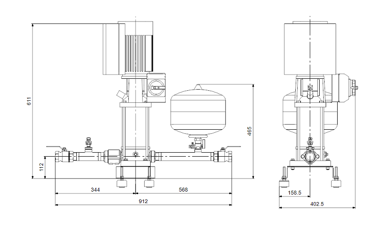 Posilovací stanice Hydro Solo E CRIE 5-7 pro zvýšení tlaku z vodovodního řadu. Napájení 230 V, Q=9,9 m3/h, H= 71,9 m, DN 32 (1 1/4"). Více informací