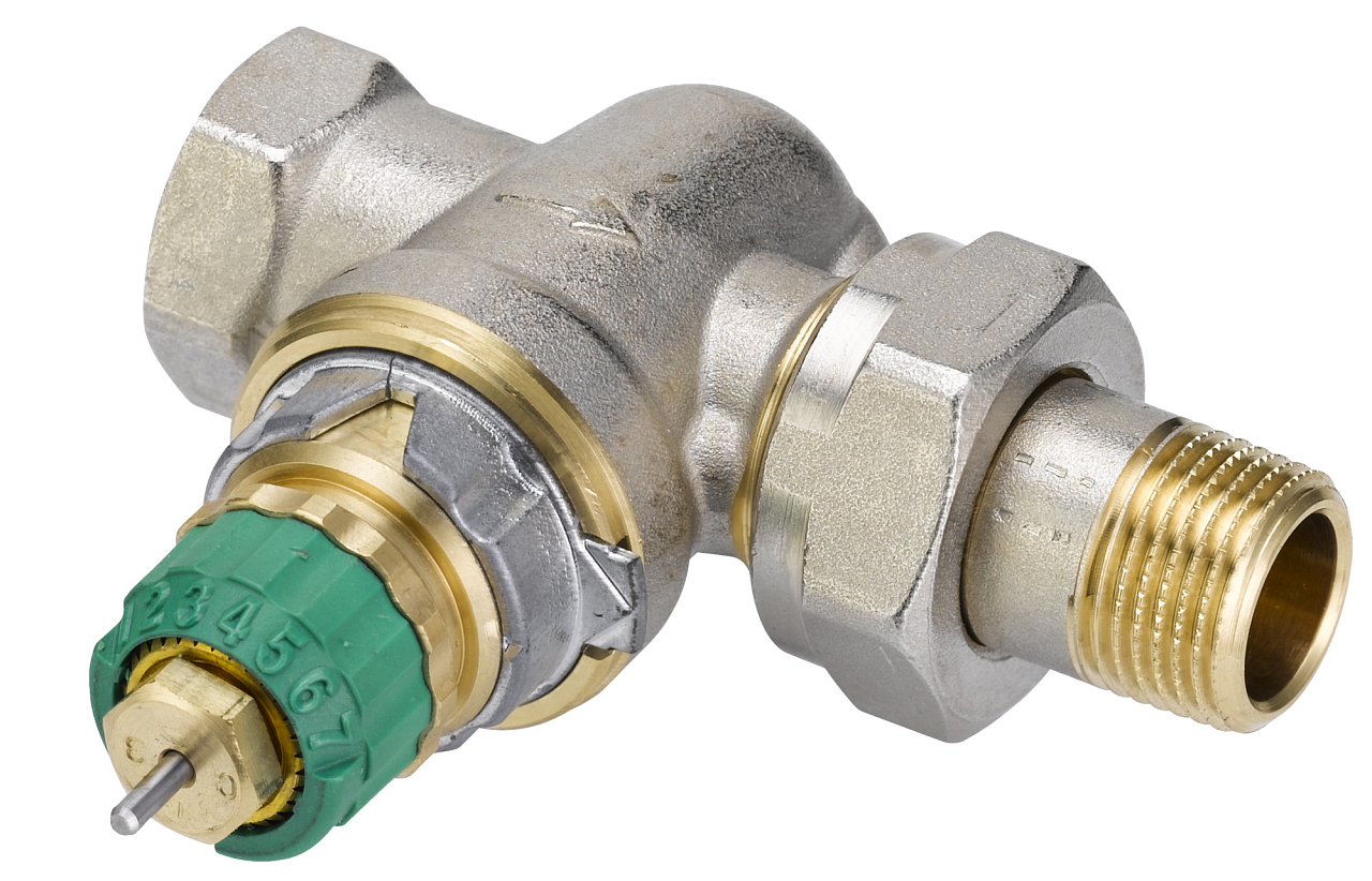 Dynamický radiátorový ventil RA-DV s tlakově nezávislou regulací, DN 10, přímé provedení F; přednastavení průtoku 1–N (10–135 l/h). Více informací