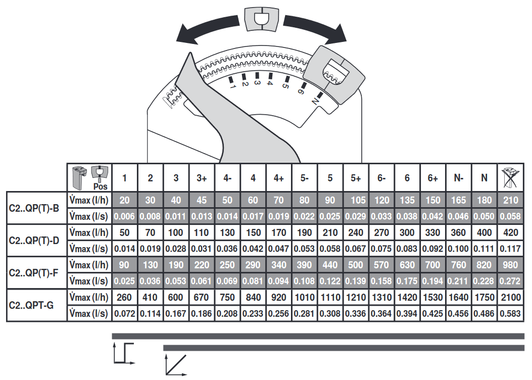 Výsledný průtok lze nastavit mírou otevření ventilu. Jednotlivé kroky nastavení jsou po 2,5 °. Koncová zarážka se jednoduše umístí do požadované polohy.