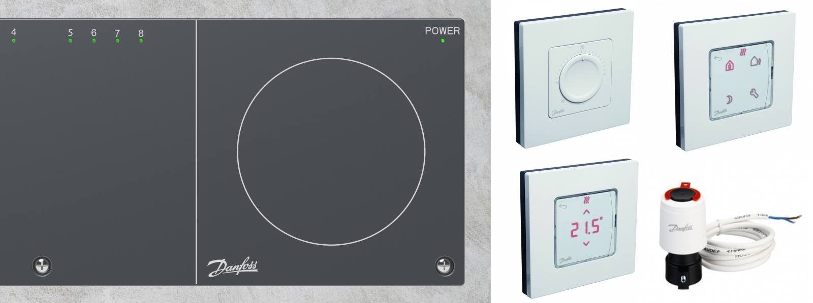 Řada Danfoss Icon splňuje veškeré požadavky kladené na regulaci podlahového vytápění. Nabízí vysokou variabilnost a přizpůsobení se potřebám domácnosti. Zahrnuje tři typy termostatů s různě pokročilými funkcemi a řídící regulátory hlídající teplotu v celém objektu. K dispozici jsou jak v drátové tak i bezdrátové variantě s možností propojit vše s mobilní aplikací a řídit vytápění na dálku.