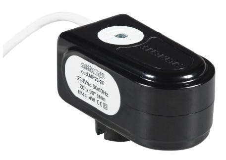 Servopohon Siemens MP20.20, 230 VAC, 2-bodové řízení, 6 Nm, indikace polohy, pomocný kontakt, kabel 0,8 m. Více informací