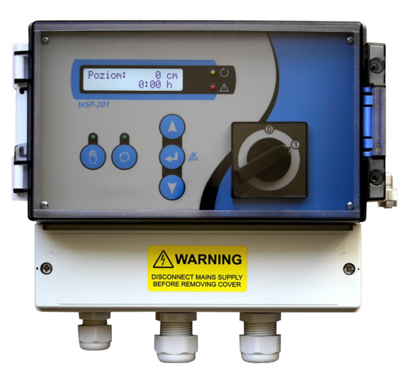 Stáhnout PDFSpínací skříňka Wilo WSP 201 s tlakovou hadičkou v délce 10 m a zvonkem pro čerpadla s napájením 230 V nebo 400 V. Skříňka ovládá čerpadla v závislosti na výšce hladiny. Výška hladiny může být měřena pomocí tlaku, rozprašovací trubice, externího senzoru nebo plovákového spínače.
