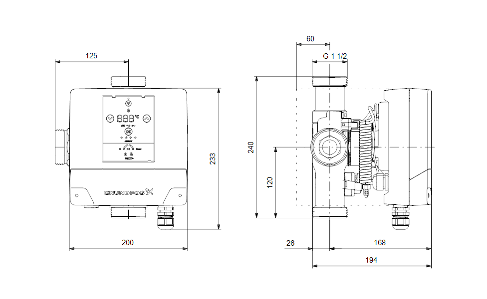 Systém se ovládá prostřednictvím intuitivního panelu a bezdrátově pomocí aplikace Grundfos GO Remote.