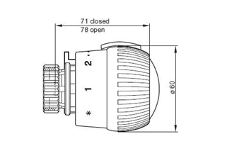 2080 (T7001) Termostatická hlavice pro veřejné prostory s připojením M30 x 1,5, rozsah teplotního nastavení 6...28 °C, bez nulové polohy. Více informací