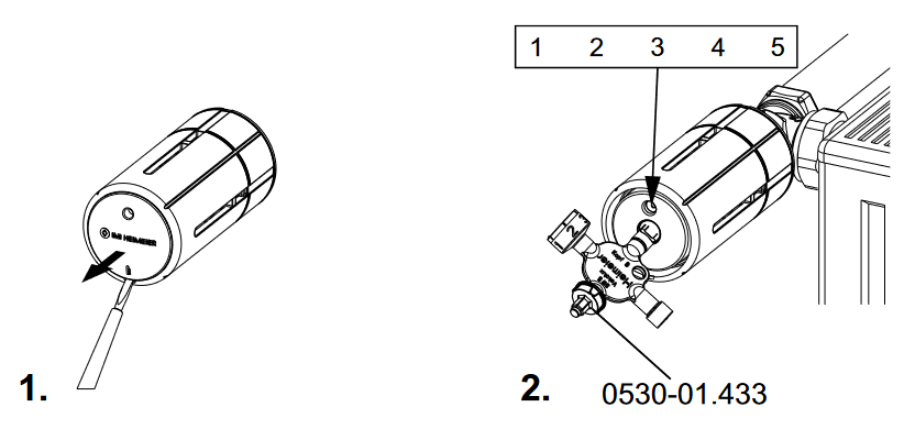 Pro nastavení teploty je nutné nejprve odstranit krytku z čela hlavice. Poté pomocí speciálního klíče otáčením nastavit požadovanou teplotu. Po nastavení se krytka vrátí na místo.