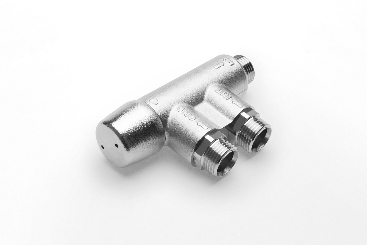 Stáhnout PDFAutomatický termostatický směšovací ventil NovaMix Compact 70 zajišťuje konstantní teplotu v místě odběru. Tím lze zaručit i při vysokých teplotách zásobníku stálou ochranu před opařením. Směšovací ventil lze použít pro sanitární instalace v domácnostech i ve veřejných prostorách. Díky estetickému provedení je vhodný pro instalaci bezprostředně pod umyvadlo. Rozsah regulace je nastavitelný do 70 °C, proto je vhodný pro využití tepelné desinfekce. Vestavěné zpětné klapky zajišťují optimální hydraulickou funkci.