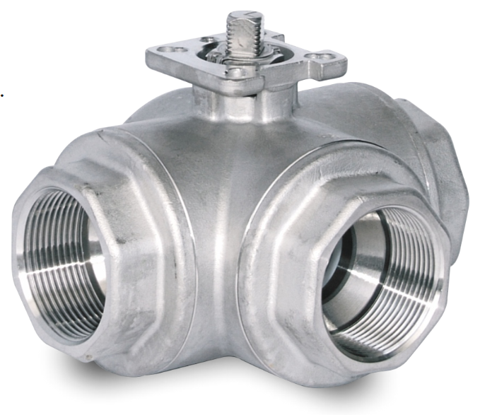Trojcestný kulový kohout VL321L s vrtáním koule typu T, PN63, DN 50, PTFE, max 190°C. Více informací