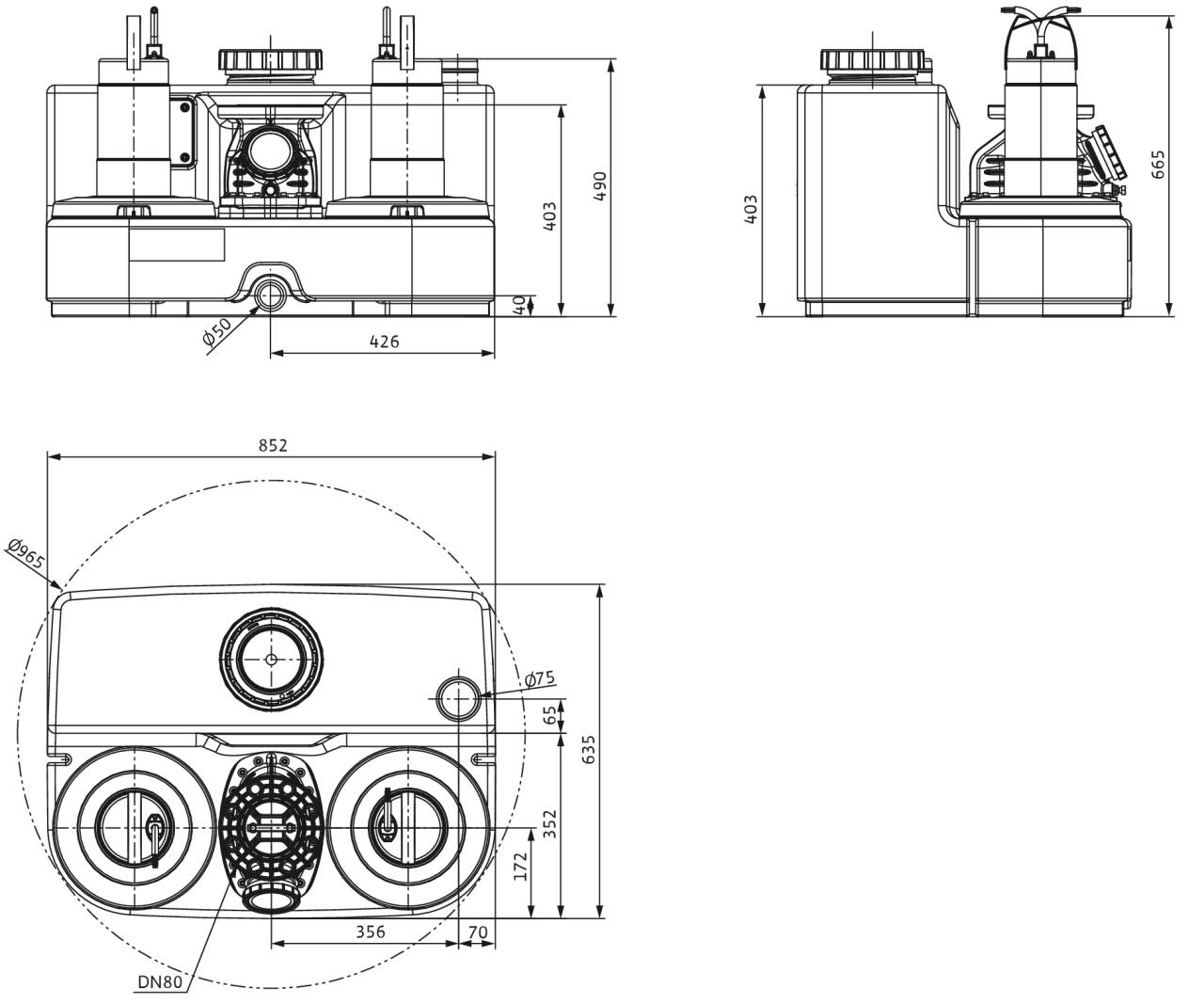 Drainlift SANI-L představuje skvělou volbu pro vícegenerační domy a průmyslové objekty s nekontrolovaným odběrem odpadní vody. Motor umožňuje využívání volitelných režimů Nepřetržitý chod a Přerušovaný provoz.