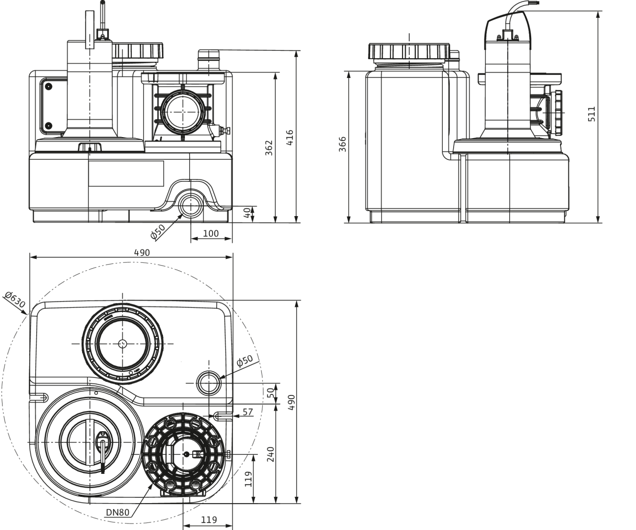 Sběrná nádrž je vzduchotěsná i vodotěsná s šikmým nátokovým sběrným prostorem. Díky průhlednému víku a čistícímu otvoru na zpětné klapce jsou údržba a čištění snadné. Vysokou spolehlivost zajišťuje nerezavějící materiál z technických plastů a nerez oceli. Velkou předností zařízení je vysoký průtok, vysoký spínací objem, termická ochrana motoru a alarm. Úroveň hladiny v nádrži se měří analogovým výstupním signálem 4...20 mA.